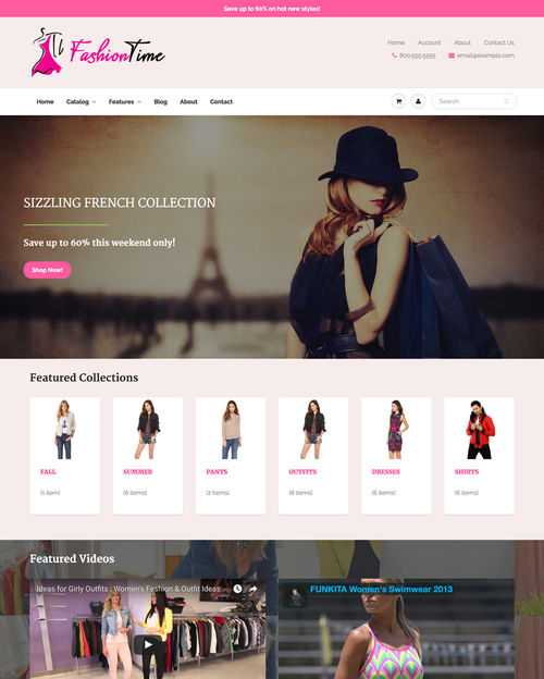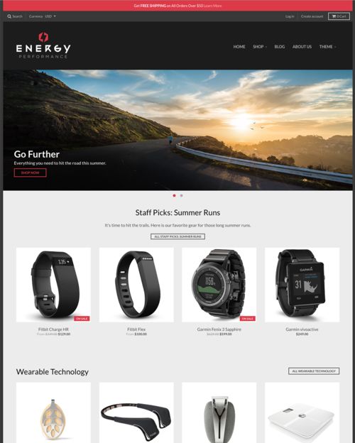 This Shopify theme is available from Shopify, and it features video integration, search engine optimized code, multiple design styles, and more.