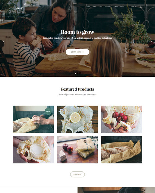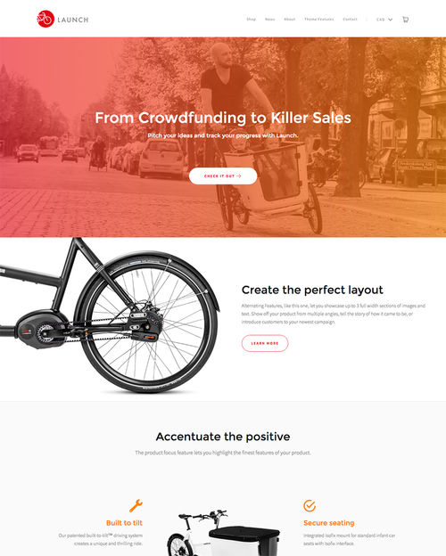 Launch, available from Shopify, is a fresh new ecommerce theme which features multiple child themes, search engine optimized code, bold design elements, video background support, testimonial support, and more.