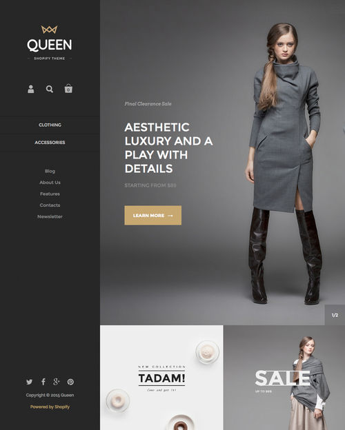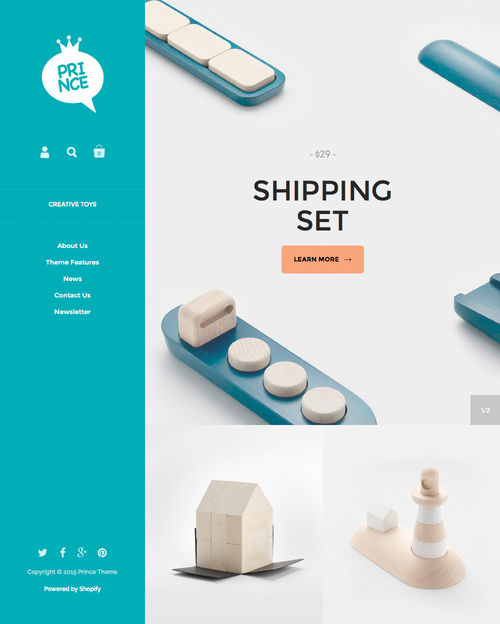 Kingdom, available from Shopify, is a fresh new ecommerce theme which features search engine optimized code, multiple styles, features a grid layout, and more.