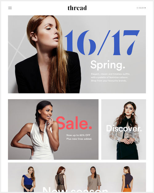 This fresh new ecommerce theme is available from Shopify, and it features multiple child themes, search engine optimization, bold imagery, and more.