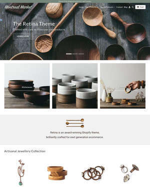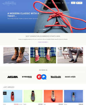 This is a stunning theme for Shopify, available from Shopify, called Retina. It features search engine optimized code, bold design elements, video integration, multiple child themes, HD and 4K display support, and more.