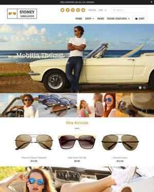 Elegant Sunglasses is a theme for Shopify which features newsletter integration, live chat support, support for favicons, contact form integration, support for multiple currencies, social media functionality, a dropdown menu, a fully responsive layout, search engine optimized code, Bootstrap support, a user registration form, grid layouts, and jQuery effects.