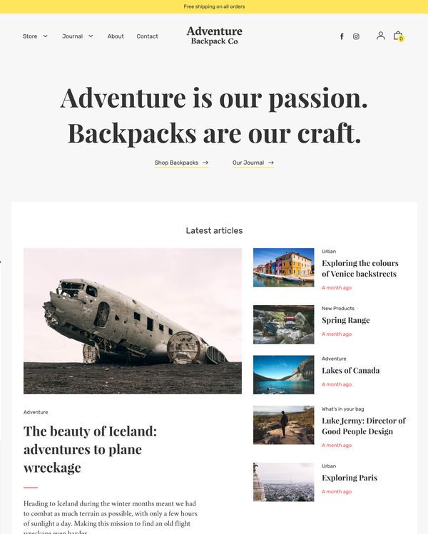 Editorial is an outstanding Shopify theme for ecommerce which features grid layouts, search engine optimized code, video background support, and multiple styles.