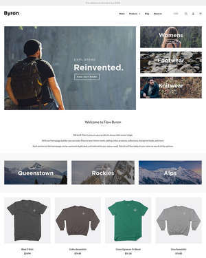 This is a superb website theme, by Shopify, called Flow. It features search engine optimized code, multiple design styles, video integration, minimal design, a grid layout, and masonry style layouts.