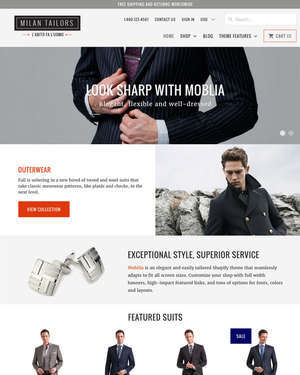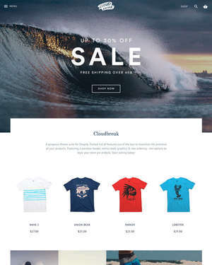 Here’s a great Shopify theme which features a mobile and tablet compatible layout, a user registration form, social media functionality, newsletter integration, favicon support, parallax multi layered graphics, search engine optimization, dropdown menus, jQuery effects, Bootstrap support, support for multiple currencies, contact form integration, online chat integration, and a grid layout.