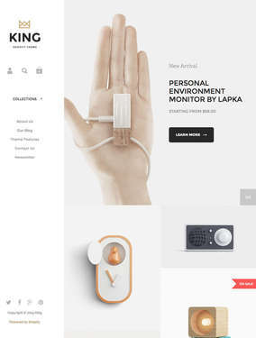 Kingdom, available from Shopify, is an awesome website theme which features a grid layout, search engine optimization, video embedding functionality, multiple design styles, and more.